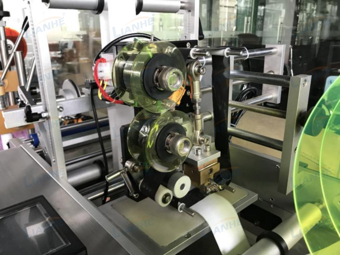 本設(shè)備專(zhuān)門(mén)用于圓形瓶子的貼標(biāo),貼標(biāo)精準(zhǔn),采用進(jìn)口高精度電眼、程序控制器控制同步電機(jī),可單面貼標(biāo),也可雙面貼標(biāo)。